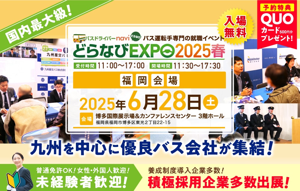 6月28日(土)開催のバス運転手専門の就職イベント「どらなびEXPO2025春 福岡会場」への出展が決定しました!