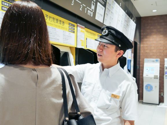 業務内容:バスターミナル利用者への高速バスの案内、チケット発売、荷物取り扱い等を中心に、観光や交通アクセスの案内など